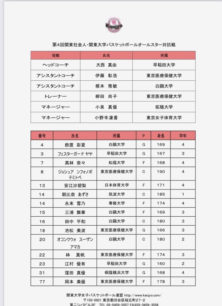 2022年12月25日(日)に足立区総合スポーツセンターにて「第4回関東社会人・関東大学バスケットボールオールスターゲーム~クリスマスカップ~」が開催されます。そのオールスターゲームに高商女バス卒業生の高林奈々が選ばれました。皆様応援をお願いします。