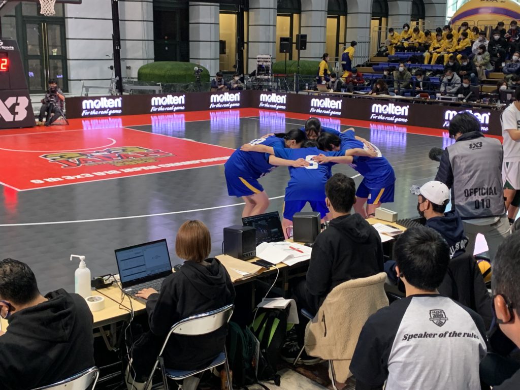 ベスト4をかけたクォーターファイナルは岡山県代表と対戦しました。順調にリードを広げるもののファールが混んでしまいチームファールが7になってしまいました。3×3 はチームファールが7になるとどんなファールでもツーショットになってしまいます。相手にフリースローを連続して決められ、逆転負を許してしまいました。でも、選手は本当に良く頑張りました。三年生お疲れ様でした。