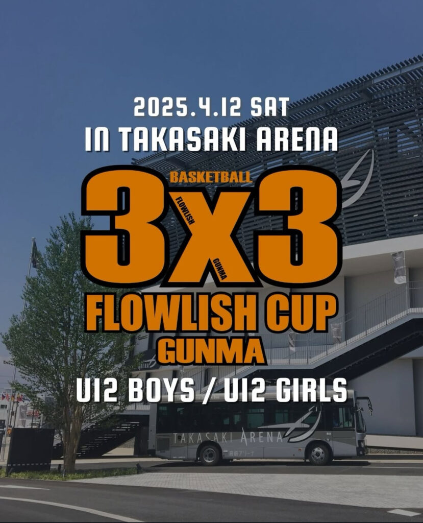 3×3 女子日本代表は 3 月30日 (日) に「FIBA 3×3 アジアカップ2025」の最終日を迎えて決勝トーナメントに臨み、準々決勝で韓国を 21-11 で破ると、準決勝ではフィリピンに 21-9 で快勝して決勝へ進出。前回大会覇者のオーストラリアと対戦して 17-21 と一歩及びませんでしたが、A 代表として過去最高位の銀メダルを獲得しました。さらに日本代表として大活躍したフローリッシュGUNMA所属の高橋芙由子選手が女子得点王として大会ベスト 3 に選出されました。そのフローリッシュが主催するU12の大会です。